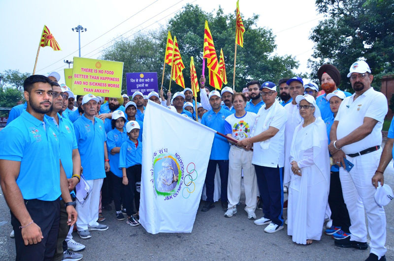Large number of participants of the sports fraternity, officials of about 22 Sports Associations recognized by J&K Olympic Association participated in the run which was flagged off by Mayor, Jammu Municipal Corporation, Rajinder Sharma from Manda Chowk.