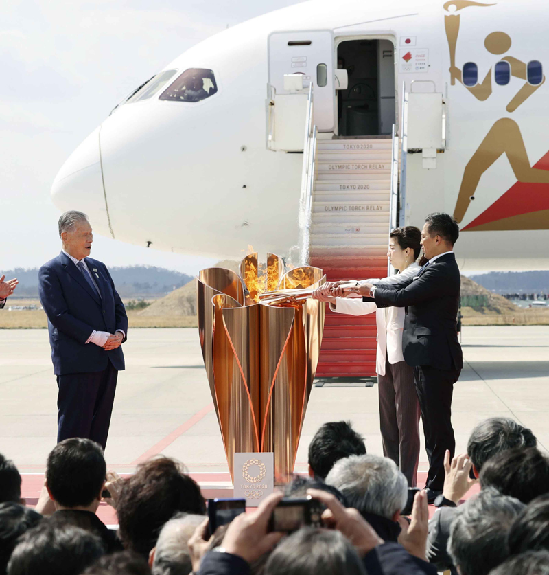 The Tokyo 2020 Go, a chartered aircraft carrying the flame, landed at the Japanese Air Self-Defense Force base in Matsushima, Miyagi Prefecture today.