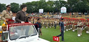 Omar Abdullah unfurled National Flag and took salute at the march past at Bakshi Stadium here.
