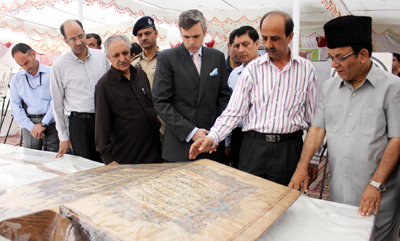 Secretary JKAACL, Khalid Bashir Ahmad explained the Holy memorabilia to the Chief Minister and described the exhibition as a “window on rich cultural heritage of Kashmir”.