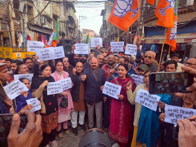 The protest was led by Yudhvir Sethi, MLA Jammu East, and witnessed participation of Adarsh Jathiar, Shiv Kumar Sharma, Anil Masoom, Savita Anand, Praveen Kerni, Arun Sethi, Madan Gopal Tony, Anuradha Sharma, Ajeet Yogi, Harvinder Singh, Karan Sharma, Bishan Singh, Mohan Singh Rana, Preeti Sharma, Sharda Devi and many BJP karyakartas, local residents and shopkeepers, raising slogans against the Government for prolonged power cuts during the harsh Winter season and alleged neglect of basic public issues.