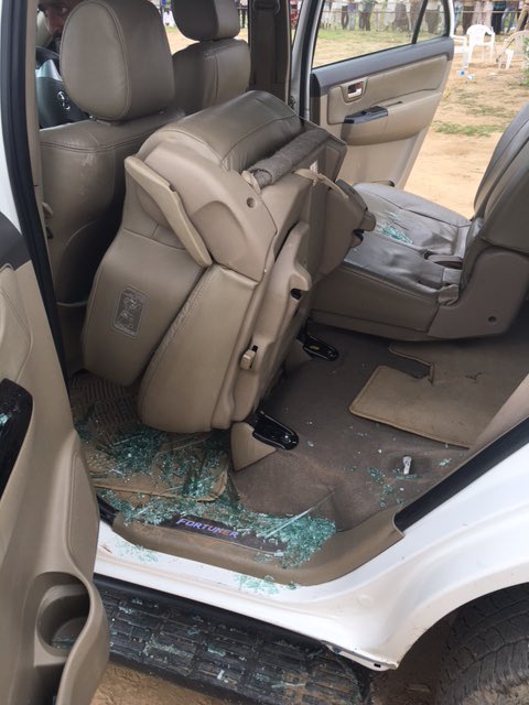 He said that several cars in the convoy were damaged, their window panes smashed and an SPG man suffered minor injury.