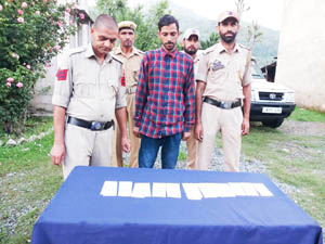 Reports said a police naka team from Police Station Kotranka, headed by SHO Kandi Manzoor Kohli under the supervision of DySP Operation Sukhdev Singh laid a Naka at Jaglanoo, Kandi and during routine frisking a pedestrian was seen coming from some distance. He, however, soon after noticing the police Naka, started to move back which developed suspicion and cops chased and nabbed him at some distance.