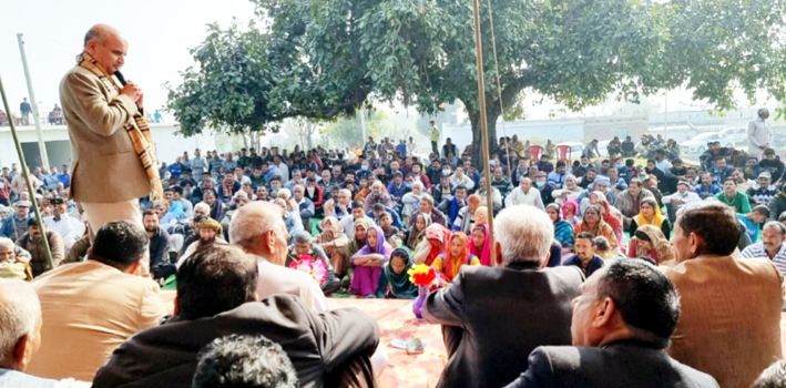 Ex-DyCM, Tara Chand addressing SC/ST/OBC convention in Khour on Tuesday.