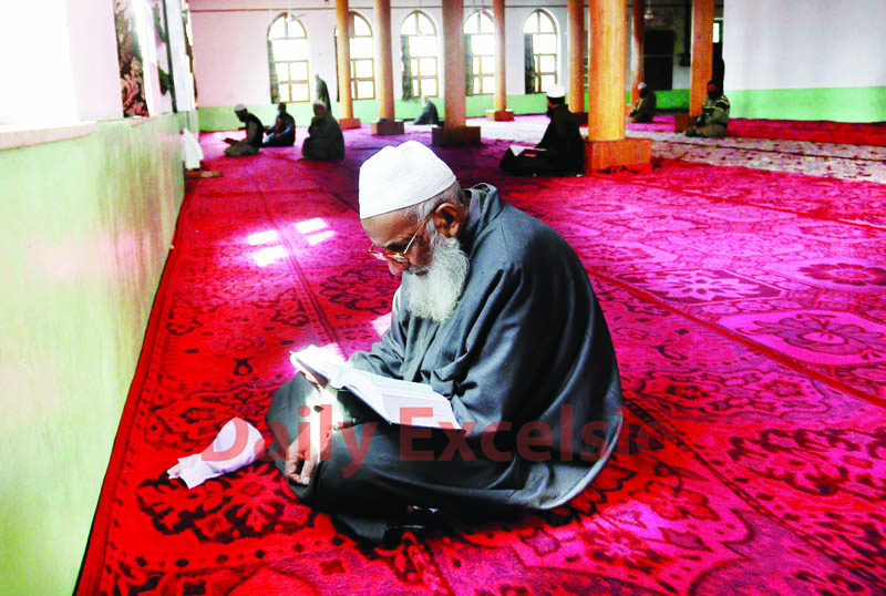 Only few people are seen in a Mosque in Bandipora town on Friday. -Excelsior/ Aabid Nabi