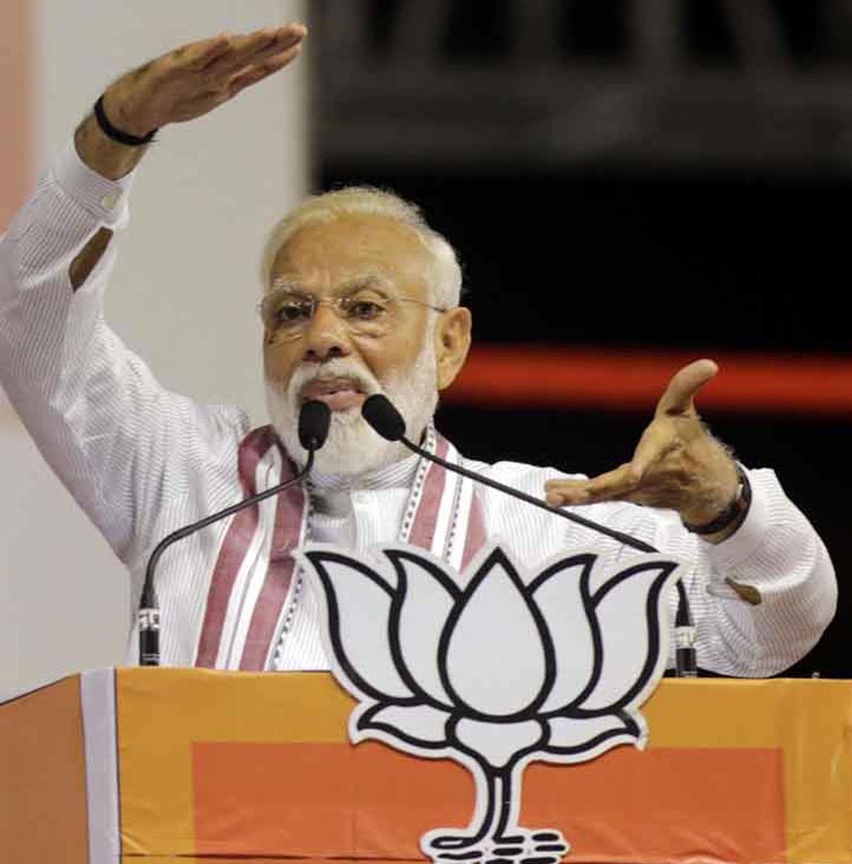 The prime minister hit out at the opposition for attacking ‘chowkidar’ and Ram bhakts, and alleged that the alliance wanted a helpless government because their mantra was “jaat, paat japna; janata ka maal apna” (Talk about caste while looting people’s money).