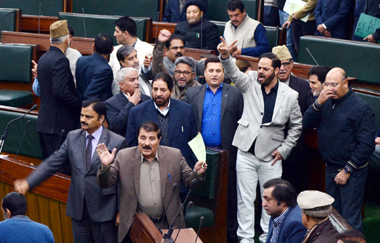Opposition MLAs protesting in the Assembly on Saturday. -Excelsior/Rakesh By Daily Excelsior - January 21, 2018 Share FacebookTwitterWhatsAppPinterestLinkedinCopy URLTelegramEmailTumblrReddItPrintKoo Opposition MLAs protesting in the Assembly on Saturday. -Excelsior/Rakesh Opposition MLAs protesting in the Assembly on Saturday. -Excelsior/Rakesh Follow our WhatsApp channel