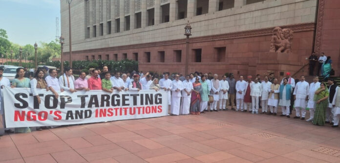 Displaying a huge banner which had ‘Stop Targeting NGOs and Institutions’ written on it, the MPs raised slogans against the government and demanded the withdrawal of the Bill.