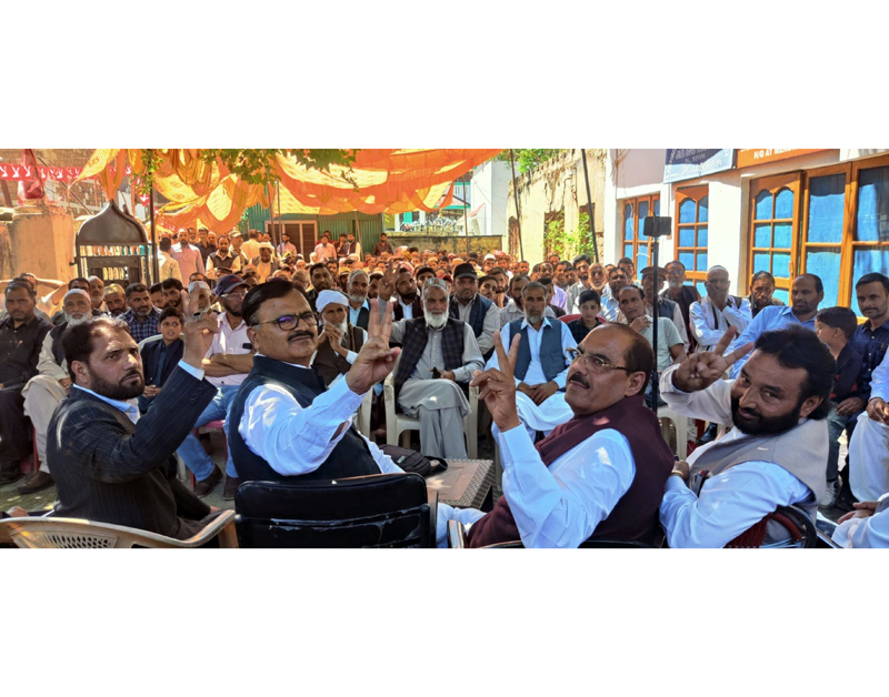 Senior NC leader Javed Rana and others during election meeting at Mendhar on Saturday.