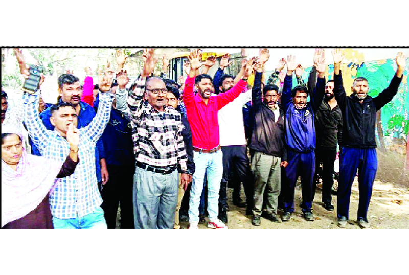 JAMMU, Nov 11: The Union of Civic Safai Karamcharis (SKCs) of Jammu Municipal Corporation (JMC) here today staged a protest demonstration under the leadership of their president, Rinku Gill.