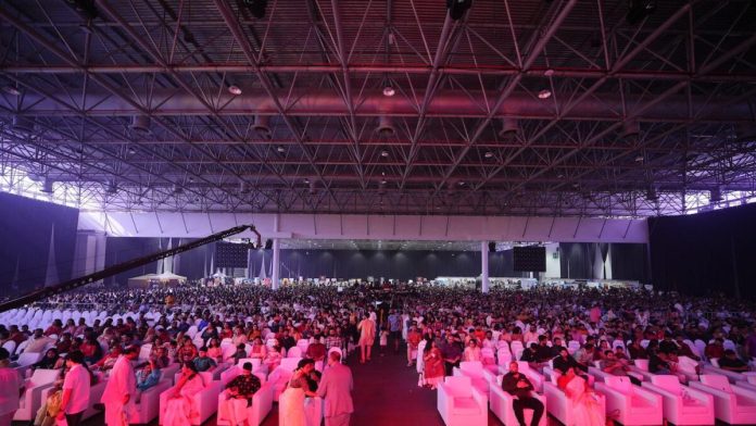Hundreds of people lined up to enter the event, which saw high-energy performances of folk dances and music of the state.