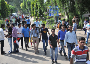 Candidates coming out of an examination centre at Jammu on Sunday. -Excelsior/Rakesh