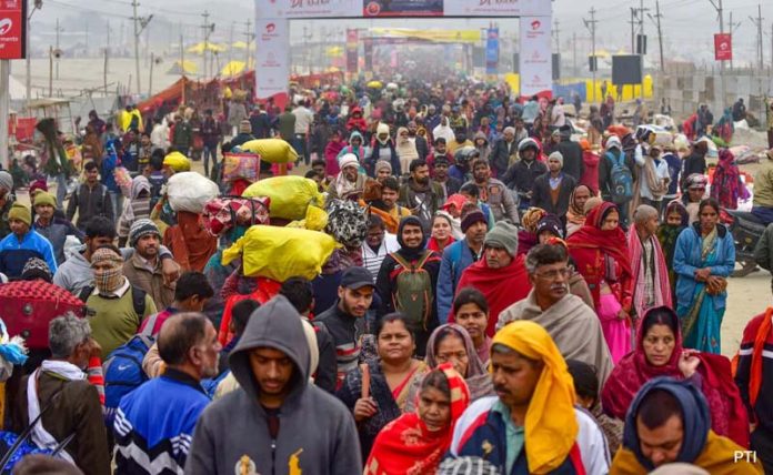 PRAYAGRAJ (UP), Jan 15 : More than 20 lakh devotees took a dip at the Sangam — the confluence of three holy rivers — on the occasion of Makar Sankranti on Monday, officials said.