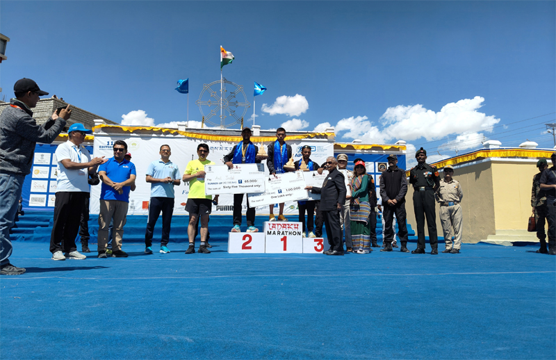 LEH, Sept 8: The 11th edition of the prestigious Ladakh Marathon concluded with a vibrant closing ceremony at NDS Stadium, Leh. The event witnessed participation from athletes across India, competing in various marathon categories. Lieutenant Governor of Ladakh, Brigadier (Dr) BD Mishra (Retd), graced the occasion, distributing medals, certificates, and cash prizes to the winners.