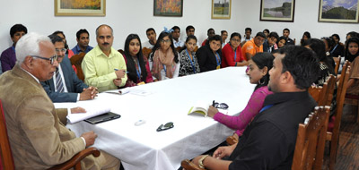 Governor NN Vohra interacting with participants of KIP at Raj Bhavan on Thursday.