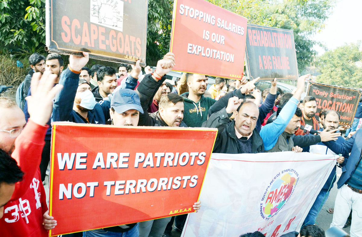 JAMMU, Dec 21: While package employees continues their protest in front of Jammu Press Club to express their anger over the statement of Lt Governor, Manoj Sinha clearing the Government stand that the salaries of package employees will not be released till they join their duties in Kashmir, various KP bodies have also expressed their ire against the statement.
