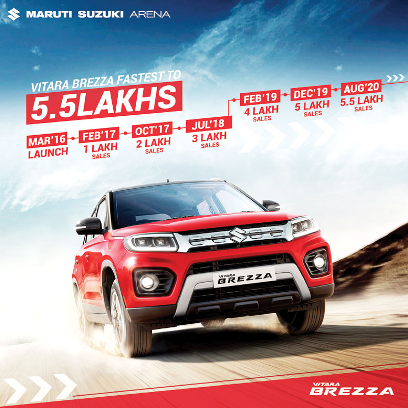 Speaking on the success, Shashank Srivastava, Executive Director Marketing and Sales, Maruti Suzuki India Limited said, “Since its launch, Vitara Brezza has dominated the compact SUV segment. As a trendsetter, it clicked with the passion of the SUV buyer, with its bold design language, powerful performance and sporty character. It quickly went on to become the most awarded compact SUV as well as dominated the sales charts. With the introduction of the powerful 1.5L petrol engine along with numerous design updates, Vitara Brezza has further delighted the customers and cemented its pole position in the segment. This 5.5 lakh sales milestone of Vitara Brezza has been a marquee statement of our endeavour to consistently innovate and strengthen Maruti Suzuki’s portfolio in line with the current consumer preferences and market trends.”