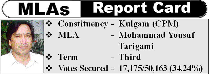 Similarly, inhabitants of this Constituency said that they are satisfied with the timely construction of many projects with the personal efforts of local CPI (M) leader and MLA Kulgam Assembly constituency Mohammad Yousuf Tarigami, but maintained that little attention was given to some other important projects like drinking water supply, electricity and health care.