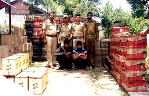 Two persons namely Showkat Ahmed, son of Mohammad Rayaz of Hakora, tehsil Dooru, district Anantnag along with driver of truck namely Wakeel Ahmed, son of Bashir Ahmed of Larkipura, tehsil Dooru, district Anantnag have been arrested.