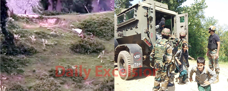 Pak army raises white flag in Hajipir sector (left) and Army rescues school children in bunkers in Mendhar sector on Saturday. -Excelsior/Rahi Kapoor