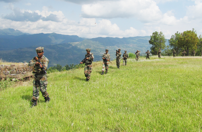 Troops guard the LoC during shelling.