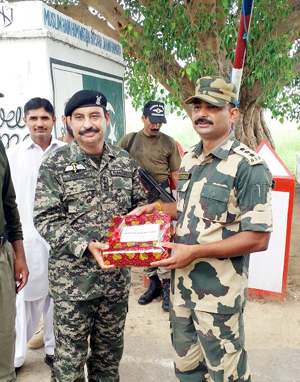The BSF officials and Rangers were together at Octroi Post for half an hour during which they exchanged sweets and greeting before dispersing.