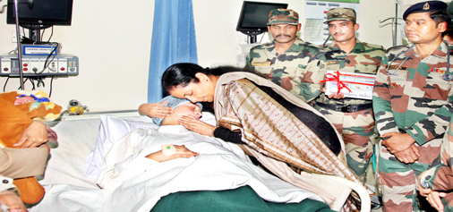 She visited Military Hospital, Satwari and inquired condition of the persons injured in Sunjuwan terror attack.