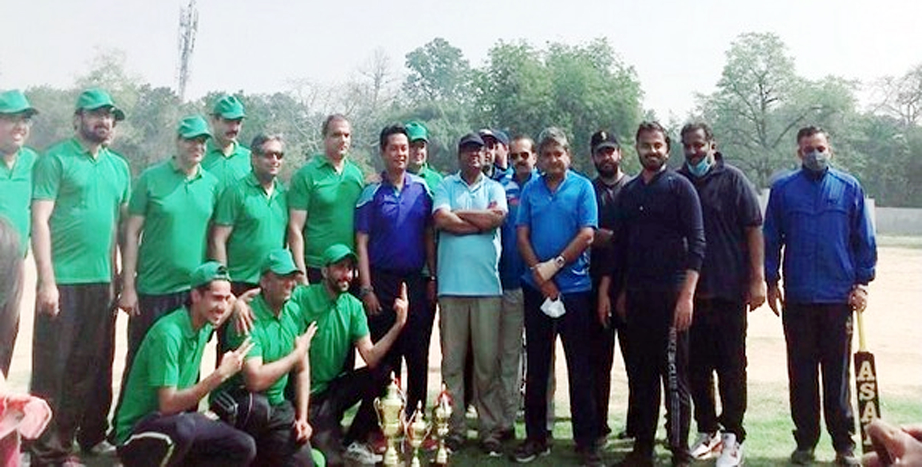 Both teams consisting of 11 members played the match in a jovial and cordial atmosphere with a tape ball