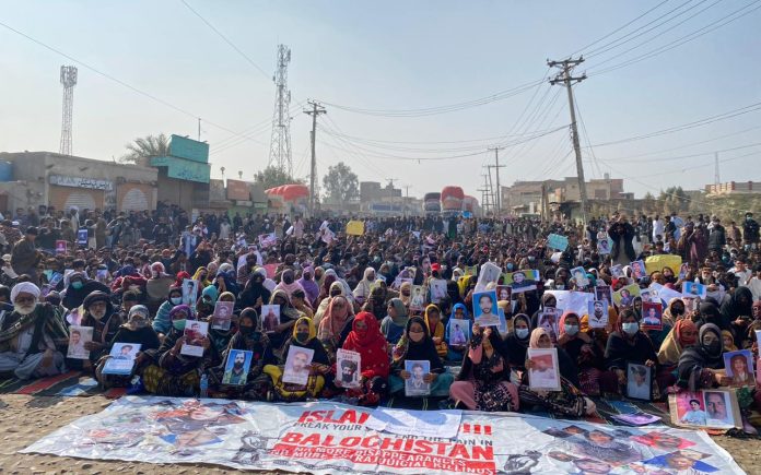 Dera Gazi Khan (Balochistan), Dec 18: Massive crowds gathered at Dera Gazi Khan in Balochistan as the March against Baloch genocide staged a sit-in against the arrest of several Baloch cadre as well as against the disappearance of Baloch people.