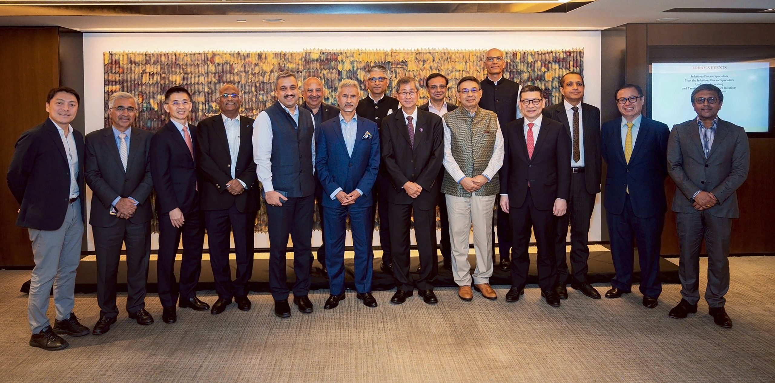External Affairs Minister S Jaishankar with with leading Singaporean Corporate figures, in Singapore.
