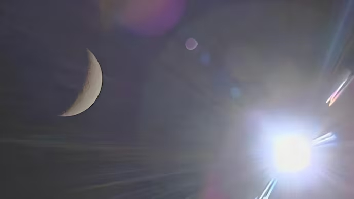 The first image showed the sun as a bright spotlight; the second was that of a sparkling half moon while the third image showed the moon on the left and the sun on the right, according to images shared by CNSA online.