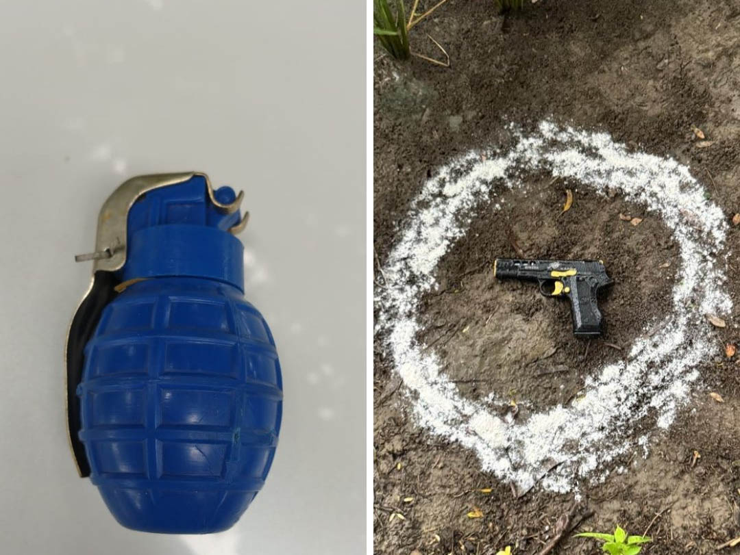 Police recovered a hand grenade and a .30 bore pistol along with two live cartridges and two empty shells of .30 bore from their possession.