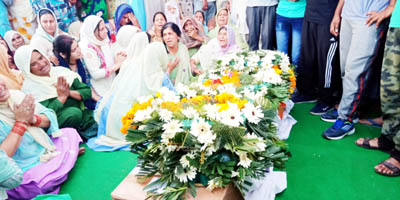 A pall of gloom descended the Reasi town after the mortal remains of the brave jawan wrapped in National flag and laden with the flowers arrived at the venue in special police vehicle from Srinagar. A wreath laying ceremony was held where SSP and DC paid their homage to the Martyr. Later, the body was brought to his home village Gran Morh on Reasi-Jyotipuran Road late in the evening. Family sources said that cremation would take place tomorrow at Chenab river bank.