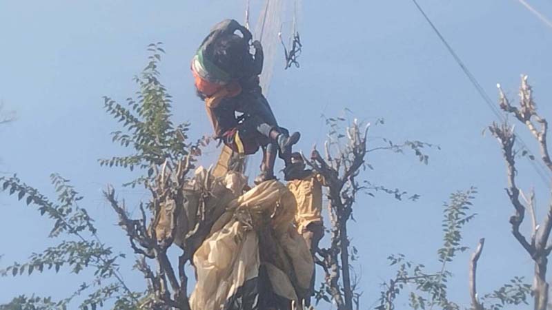 The Para-glider, namely Munish Kumar, son of Kamal Kumar, resident of Chamba in Himachal Pradesh was gliding in Dhanwa area of Pouni when he stuck into the live electric wires. The passersby, locals and Police immediately came into action and rescued after an hour-long hectic efforts.