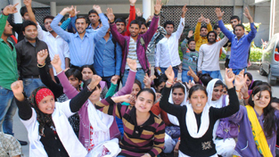 Para medical students raising slogans during protest at Jammu on Friday.   —Excelsior/Rakesh