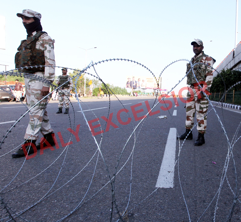 Para-military personnel guard a Jammu City road on Saturday. -Excelsior/Rakesh By Daily Excelsior - November 10, 2019 Share FacebookTwitterWhatsAppPinterestLinkedinCopy URLTelegramEmailTumblrReddItPrintKoo Para-military personnel guard a Jammu City road on Saturday. -Excelsior/Rakesh Para-military personnel guard a Jammu City road on Saturday. -Excelsior/Rakesh Follow our WhatsApp channel
