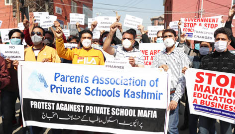 Parents Association of Private Schools protesting in Srinagar. —Excelsior/Shakeel By Daily Excelsior - October 16, 2020 Share FacebookTwitterWhatsAppPinterestLinkedinCopy URLTelegramEmailTumblrReddItPrintKoo Parents Association of Private Schools protesting in Srinagar. —Excelsior/Shakeel Parents Association of Private Schools protesting in Srinagar. —Excelsior/Shakeel Follow our WhatsApp channel