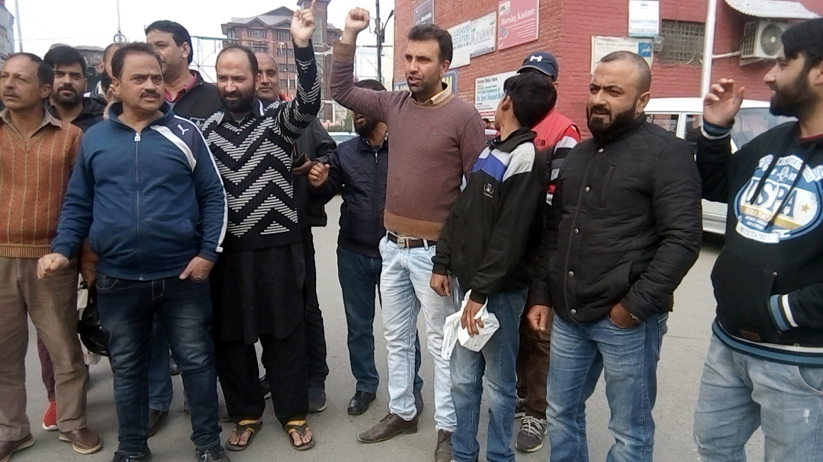Parents of students protesting in Srinagar on Saturday. —Excelsior/Shakeel
