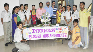Participants and judges posing for a group photograph during Flower Arrangement Competition at KCIS.