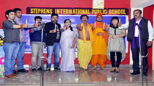 Participatns during Hindi play ‘Vivekananda’ staged by Yamini Cultural Society at Stephan International School, R S Pura on Friday.