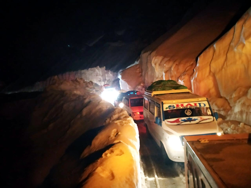 Passenger vehicles trapped on snow clad Mughal Road, near Pir-Ki-Gali on Wednesday night.— Excelsior/Ramesh Bali By Daily Excelsior - May 2, 2019 Share FacebookTwitterWhatsAppPinterestLinkedinCopy URLTelegramEmailTumblrReddItPrintKoo Passenger vehicles trapped on snow clad Mughal Road, near Pir-Ki-Gali on Wednesday night.— Excelsior/Ramesh Bali Passenger vehicles trapped on snow clad Mughal Road, near Pir-Ki-Gali on Wednesday night.— Excelsior/Ramesh Bali Follow our WhatsApp channel
