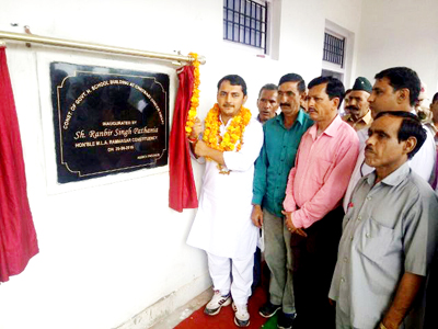 MLA Ramnagar R S Pathania inaugurating school building under RMSA.