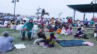 Patients and their attendants rush outside as fire breaks out in Battery Room at first floor of Super Speciality Hospital, Jammu on Monday.    —Excelsior/Rakesh