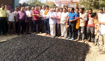 UDHAMPUR, Oct 26: MLA Udhampur Assembly Constituency Pawan Gupta kick started the black topping of  Magani-Magyote road from MI Room.