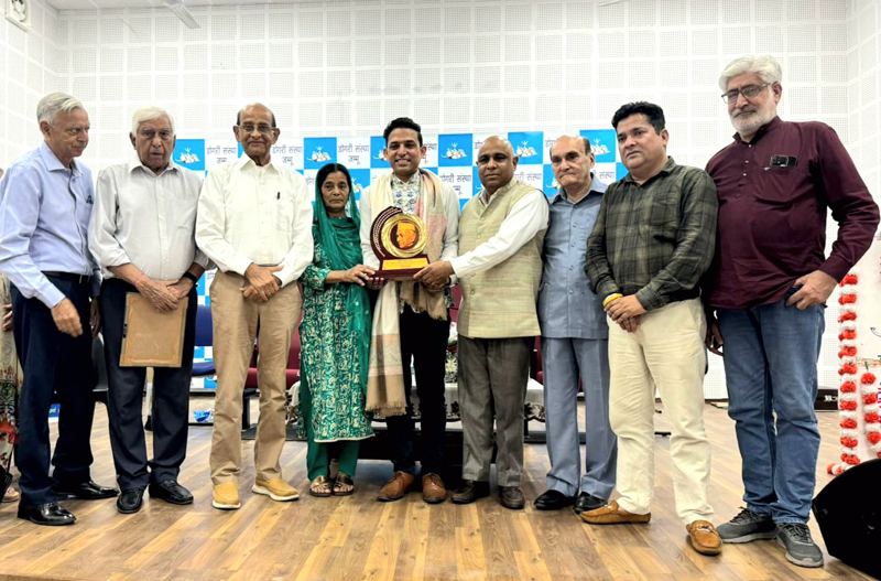 The award was conferred upon him during a simple but an impressive function, organized by Dogri Sanstha Jammu, in collaboration with family members of Padmashri Prof Ram Nath Shastri, at Dogri Bhawan, Dogri Sanstha, Karan Nagar Jammu.