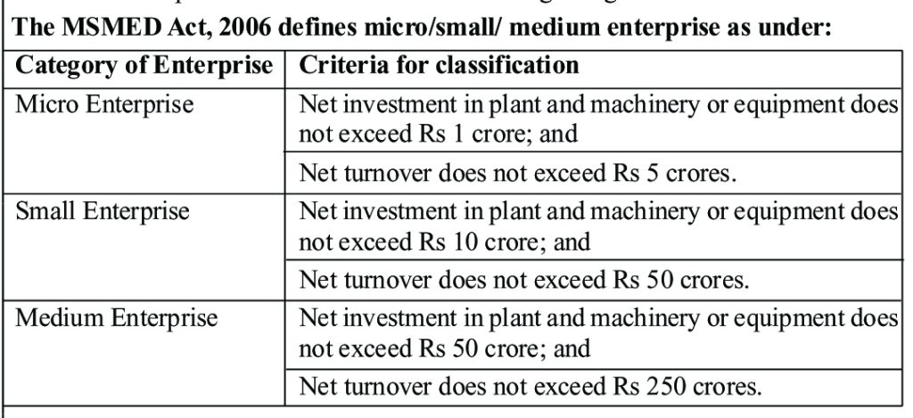 The MSMED Act, 2006 defines micro/small/ medium enterprise as under: