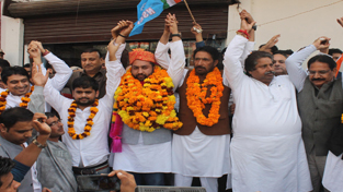 PCC chief, GA Mir, NSUI national president Fairoz Khan Ahmed along with senior Cong leaders at a function in Jammu on Thursday. -Excelsior/ Rakesh