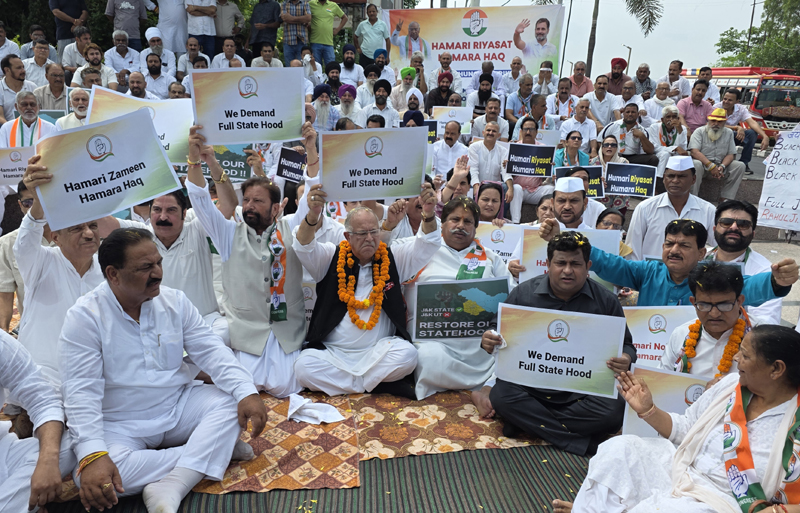 The senior Congress leaders and workers including Mahila workers continued day long dharna in Shaheedi Chowk Jammu and continued raising slogans for Statehood, he said.