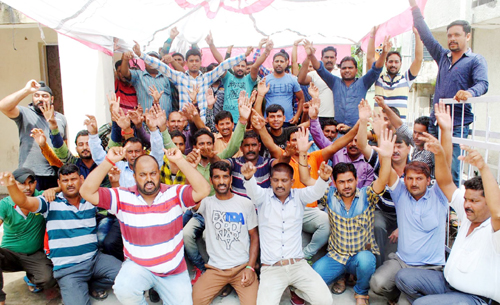 Casual labourers and need based workers of PDD during a protest at Gandhi Nagar in Jammu. —Excelsior/Rakesh