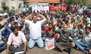 Hundreds of casual labourers of Power Development Department (PDD) today assembled outside the office of Chief Engineer and raised slogans in support of their demands. They urged the higher authorities of PDD to release their pending wages so that they can save their families from starvation, as they do not have any other source of income.